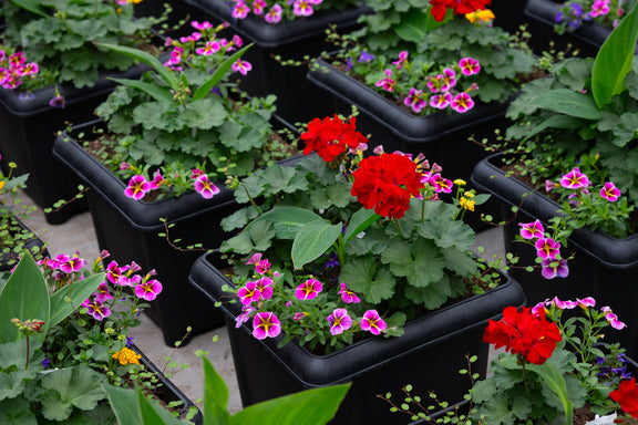 Light up your patio with the Carnival Spark Mix. This 14" square planter overflows with vivid red geraniums, playful pink-and-yellow calibrachoa, cheerful yellow lantana, and cascading greenery. It’s a bold, energetic combination that brings a festival of color to any sunny spot.